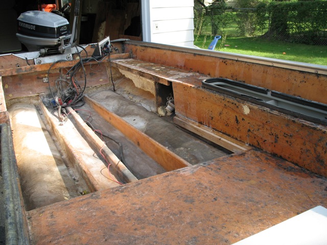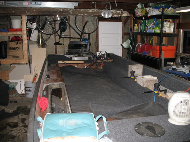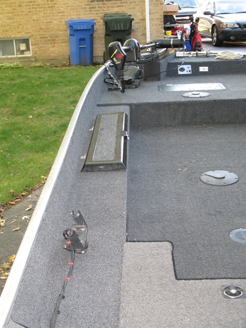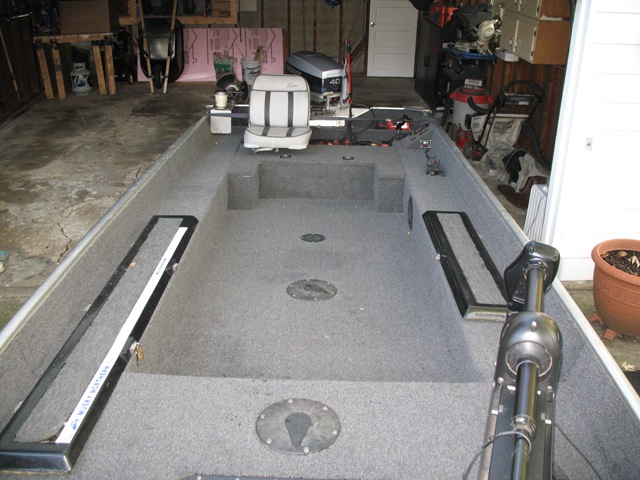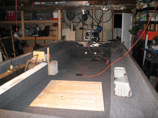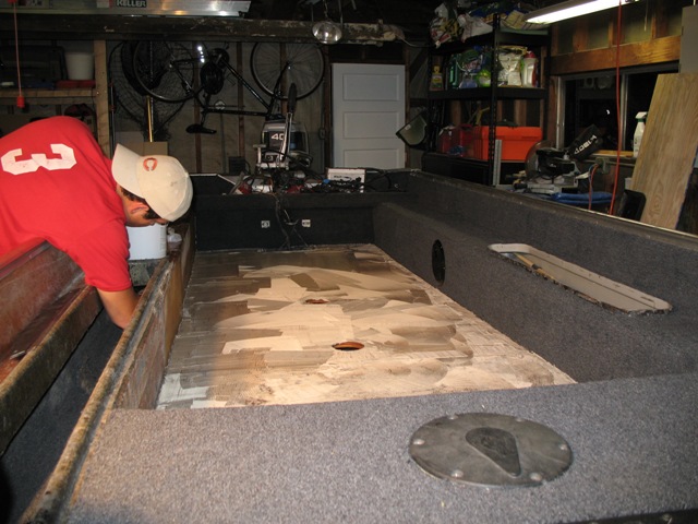 Posts: 516 Location: Kildeer, IL | Yea, fixing this boat up was a lot of fun. It really helps you understand your boat, and where everything is. It's not tough at all, it just takes a lot of time. Every time you put a coat of resin on, you have to wait another day before you can work with the wood again. So some days, I would only put in 15 minutes of work. I thought fiberglassing the floor would be tough, but it is not bad at all. It's a lot like mudding drywall. The floatation foam is really cool to work with. It's like Great Stuff on a much bigger scale. My tuffy hardly had any foam in the floor. It was just a couple of clumps. The side bunks were completely full, but the floor hardly had any in it. The floor is full now, so my boat should be quieter and a little more sturdy. A big bonus was the old carpet in my boat. Since it was so old, it came up without any effort. Plus it came up fully intact. This is very important, because when you go to cut your new carpet, you have a perfect template. I just cut everything a little proud, and then trimmed it to fit after it was glued down. If you have any questions, let me know. Scott Scott | ||