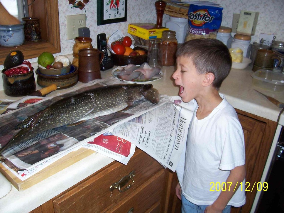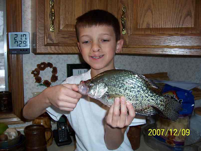 Posts: 2754 Location: Mauston, Wisconsin | Xavier and I hit the ice. We had fun. Kept 6 nice crappies (enough for a meal for us) and a N. Pike. He took all my quarters with his first fish, big fish, most fish, and other fishing bets! It was a hoot! Have fun! Al Attachments ---------------- X-Man Crappie.JPG (40KB - 133 downloads) X-Man NPike.JPG (199KB - 145 downloads) X-Man NPike-Stomach.JPG (132KB - 127 downloads) | ||