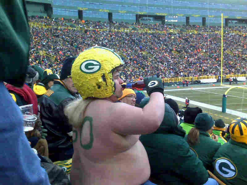 Posts: 38 Location: Rhinelander | Sled, So you're at the game slaming brewski's with your buddy Lombardi [under your beer, yellow cap] Nice wind burn. Make sure the ice is good and thick before you venture out! hahaha Jeff | ||