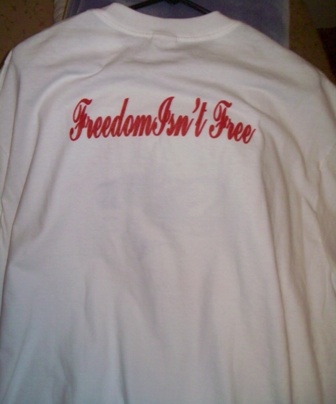 Was working in our store the other day and came up with the finished "official" Operation Muskie shirts. Stayed with the Red, White and Blue theme in honor of the vets. Also, on the back I added the "Freedom Isn't Free" quote. Thought all of you might like to take a peek at them, so here they are. Cost for the shirts is $15.00 for short sleeve (Youth Small - Adult XL, add $3.00 for XXL & XXXL) and 18.00 for long sleeves (add $3.00 for XXL and XXXL).