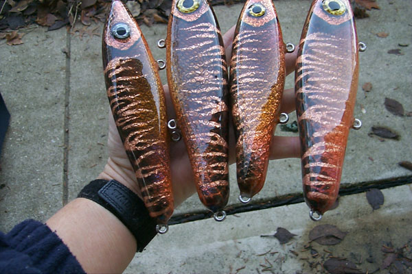 | Jump to page : 1 Now viewing page 1 [30 messages per page] More Muskie Fishing -> Basement Baits and Custom Lure Painting -> Baits for the show | |