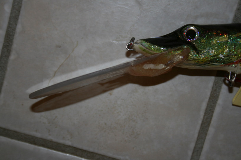 Posts: 516 | Here's the pic. Anyone need their "lips fixed"? I'm your guy. $100 per bait. Bait WILL NOT RUN PROPERLY afterward GUARANTEED! :-D What a disaster Based upon my experiments, I still believe that a new eyelet in the actual lip may help my endeavors but, as stated in paragraph one above, considering my "successes" to this point... Attachments ---------------- Lip-1.JPG (77KB - 116 downloads) Lip-2.JPG (85KB - 105 downloads) | ||