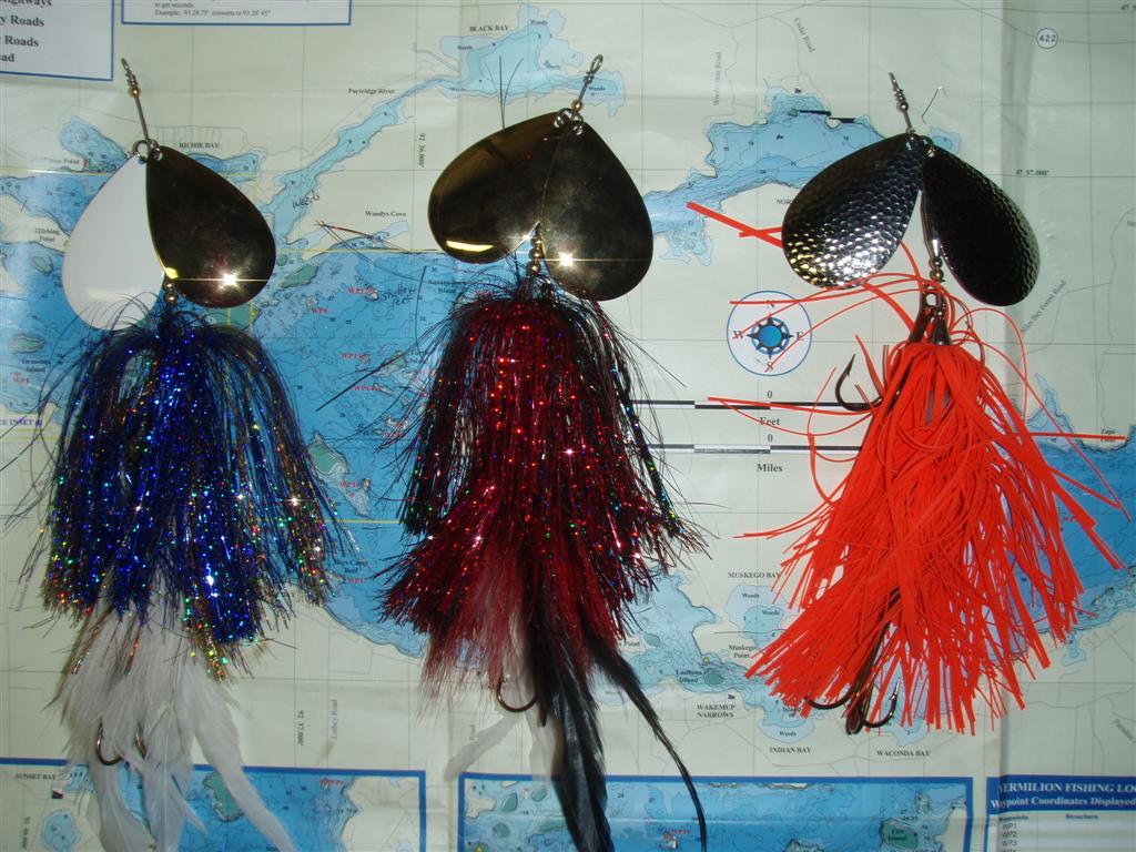All but orange and split colored bladed(half nickel and half brass on each blade) vineland bay special on the bottom, gone. Thanks to everyone so far. Seeing the interest in the shad limited edition tails above, we might have to rethink how limited the rubber skirted models are.