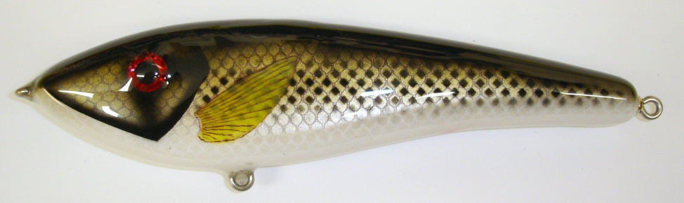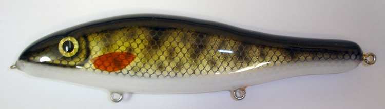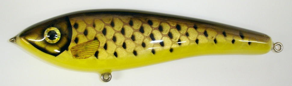 Posts: 110 Location: WI | Rockin You are correct, it is the shape of the lure. I want to try to paint them patterns of fish that are shaped the same way. I do offer them on any style lure that I make though. It is good practice for me getting use to which colors to grab so a pattern looks the same everytime, instead of guessing which colors I used. The Bass and Sucker shaped lures are almost ready for my website. Here is a picture of a Northern Hog Sucker I just finished. Chad Attachments ---------------- DSC07302 (2).JPG (60KB - 164 downloads) | ||