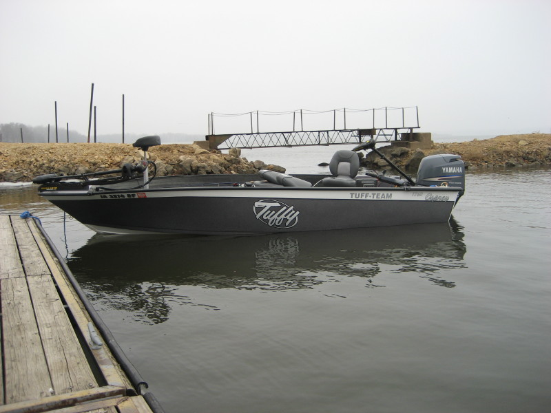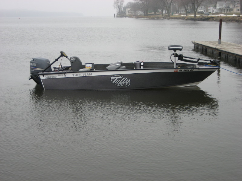 | here's a few pics of my new TUFFY 1760gt. it is powered by a yamaha 75 4 stroke.runs in the mid 30's[gps].absolutely no steering torgue and handles beautifully!minnkota maxxum pro 80 on the front and a minnkota vector 80 with 3x steering an the rear.lowrance 111c-hd on a johnny ray swivel in the back but if you turn it you can see it plainly from the front deck.i might add something else up front but not sure what or when.tons of storage and fishing space.anybody looking for a quality boat with a solid and stable ride should take a ride in a 1760!while it will be used primarily on the mississippi river it will also be going on a couple canada trips this year. so far only 9 eye's have come aboard but 1 was a 26" tub.this "not so big" boat fishes and trolls unbeleivably! it sits relatively flat on the water and bucks the wind and waves like a 20 footer.i'vd had it in some pretty good waves already and it was VERY impressive as well as dry.[thats good because the water is 36*!!]anybody near the river that wants to go for a ride just let me know.