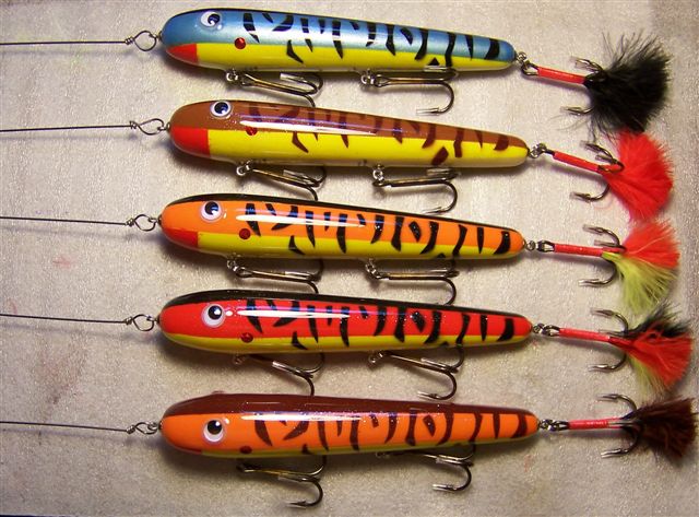 | Jump to page : 1 Now viewing page 1 [30 messages per page] More Muskie Fishing -> Basement Baits and Custom Lure Painting -> My Latest Magnum MuskieBurger Topwaters. |