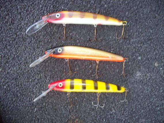 Original 10" slammers wood. Walleye is like new. Jailbird and gold shiner are slightly scratched and have been eaten a time or 2. $23 each or all 3 for $60 plus shipping.