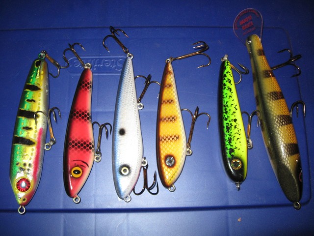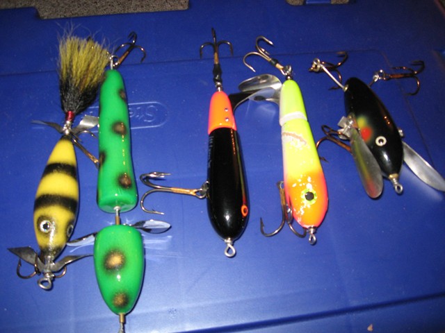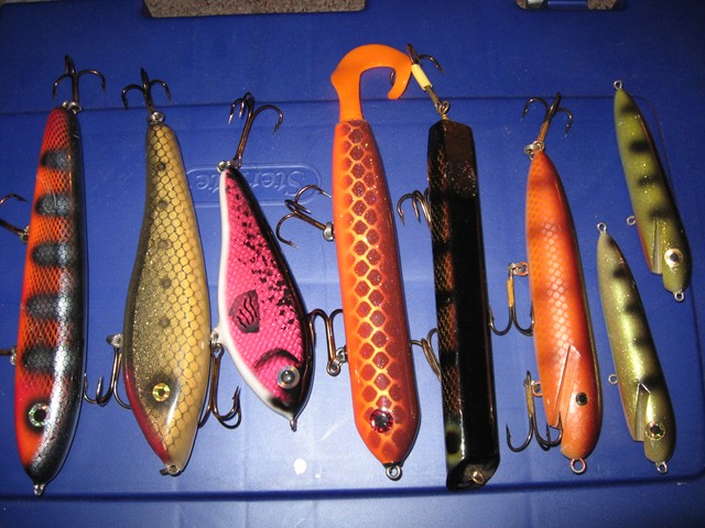 Homemade double tens, curly sues, larger weagle with grub tail and a new krusher. Maybe I will catch as many fish as new lures I have purchased this season. BG