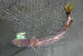 Muskie Fishing -> Lures,Tackle, and Equipment -> L'il Hustler Swim Jigs - got one to eat today