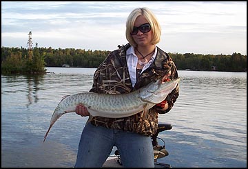 | here's the latest report from Spring Bay... Over the past few weeks, the muskies have been booming. Just people staying at the resort and people I have taken out have caught 15-20 muskies and many big bonus pike. The muskie sizes have ranged from 36" - 51.5" and the northerns ranging from 28" - 42". The lures of choice have been cowgirls or any double 9 or 10 bladed lures, creepers, & top raiders. Speed has been the key, while using the double cowgirls speed it up, while using the creepers keep it slow, and use the top raiders at a medium to fast speed. I have not raised many fish on any walk the dog lures lately. The weeds seem to be out producing the rocks on the west end. As for the walleyes, we have not had many people fishing for them. Sandy bottom at the edge of a weedline has been the top producer with a lindy rig and a crawler. The open water reefs are still producing with a jig and minnow/leech. We have some good fishermen up this week so a prompt feedback will be posted on this coming weeks fishing report. Good luck fishing!! Attachments ---------------- fish1.jpg (239KB - 142 downloads) | |||