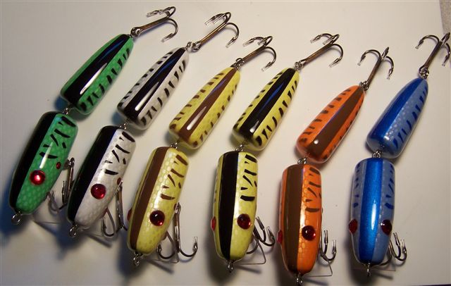 Just thought I would show a few of my newest MuskieBurger for 2008. Any and all comments are welcome. These baits have a nice action and is the first time I used a square bill on a bait that I made. These are shallow divers and can also be used as a topwater bait. Thank You. ken schmtiz
