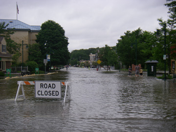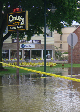 I will post some pics from this weekend. Some of them were from Friday night before higher water. Can't get into town farther, we took these pictures from our C21 office. The picture of our cottage was from the pier which is floating but tied up to shore. Down town as of Sunday was completly off limits. Two incidents of people getting swept off their feet and had to be saved before getting back into the river down the street. Thats how fast the water is rushing through down town.