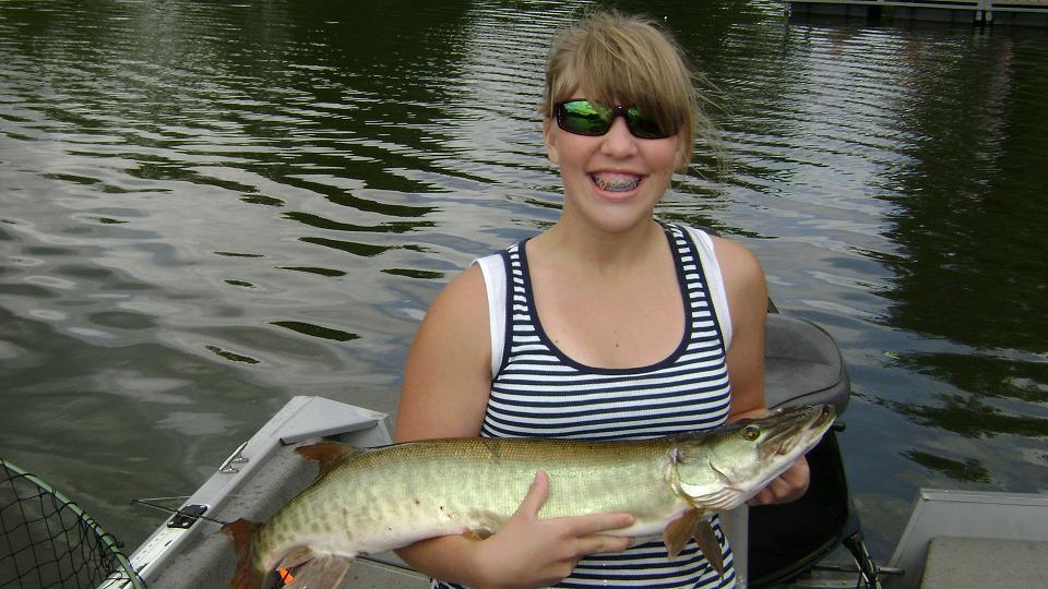 Finally broke the ice today by getting a 33 incher to eat a bucktail so first of the year finally out of the way. The other first was my fishing partner, my 16 year old daughter Melanie! She asked if we could go musky fishing today and I said sure. We spent some time at the landing going over casting and how to loosen the drag if you get one on and how to figure 8 and such. Out we go, I hook a musky and get the fish in and Mel asks if she can pick it up! I show her where to grab it and she pulls it out like a pro. A quick picture of Mel and the fish and time to release. Mel gets the fish back in the water and holds it while I grab a release shot. Fish swims off and I realize I have a new fishing partner. Hooked for life I can see. Later Mel misses a mid 30's at the side of the boat as she starts a figure 8. I ask what happened and she said the fish came out of nowhere and scared her and she reeled the leader up to the tip of the rod. Lure stopped, musky swung and missed and I see my daughter standing there with her mouth open. Cool stuff guys. Be sure to take that kid out fishing. Great day.