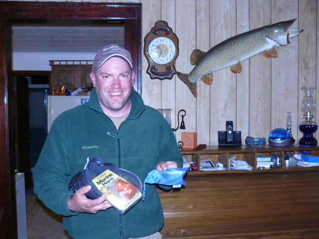 Posts: 32954 Location: Rhinelander, Wisconsin | The fish are tight lipped this weekend so far, but a couple have hit the Frabill. Everyone is on the water now as Sue and I prepare for a fish fry and grilled Brats when everyone gets in at dusk. We'll get out this afternoon for a couple hours! We had some dandy storms work through the area all afternoon, running us off the water a couple times during the day. Steve and I saw a few yesterday; one tried pretty hard to eat a Topper Stopper, but just a couple pike for our day on the water. The venison Sloppy Joes went over well last night, we were just short of running out at midnight thirty when everyone decided to hit the hay. The bugs were gone pretty much when we arrived thanks to Keith, who fired up the Ring and fogged for squitos before we got in. Should be a good time at the Hideout this evening after dark, so if you are in the area, stop by and we'll feed you and get a beer or Iced Tea or soda in your mitt if you desire. Beav, ain't the same without Taylor and you here. We need Pikopath here to get the fish going... Attachments ---------------- DSC_0003.JPG (71KB - 130 downloads) DSC_0004.JPG (45KB - 121 downloads) DSC_0005.JPG (77KB - 138 downloads) | ||