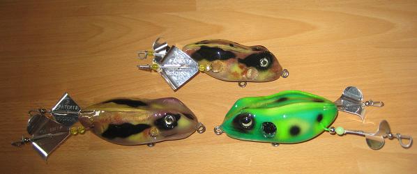 | Here is a video of the Buzzin Frog. This thing makes a wonderful noise and looks awesome in the water. It will get eaten! http://www.youtube.com/watch?v=E9J8oRSZ-cY | |||