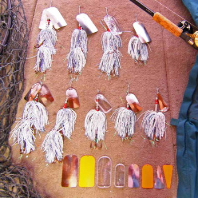 Location: Right Here | I saw these at Thorne Bros. last week. They definitely catch your eye. I heard nothing but positive comments from two guys in the shop about them too. The clear acrylic blades were pretty unique. They are very nicely built bucktails and seem like they surely had potential. Who said blades need to be round anyway!?!? Great baits!! | ||