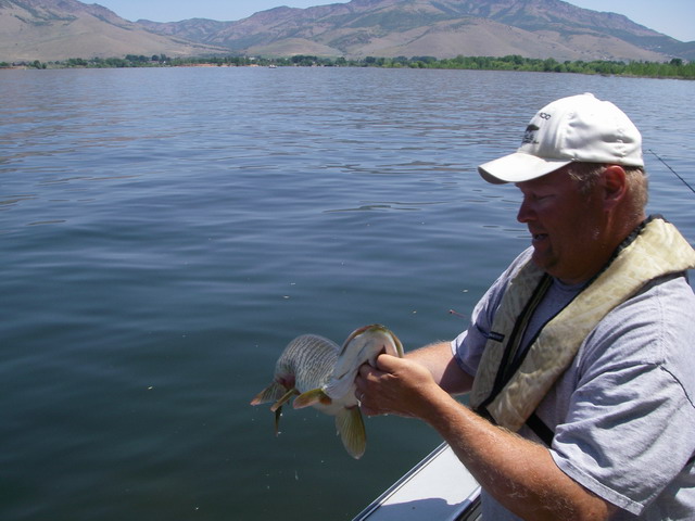 Posts: 1764 Location: Ogden, Ut | Well, out west we usually extend our weekend a day or so... We didn't wish to play bumper boats on Pineview this weekend so we hit another puddle and harassed the bluegills. We took it out on the muskies today. Only had a couple of looks casting and the boys asked if we could troll (which I wasn't all that wild about since it hasn't been working recently), so we did. I have to admit it was a good call on their part. For the 2 hours we were trolling we had 4 rips (one double of which we landed one of the fish) and 2 , well maybe 1 1/2, fish in the boat Nik and Dane each lost one part way to the boat, but Dane made good on his second attempt and I managed to slide one into the net. Nik did an admirable job as netboy and photographer. S. Attachments ---------------- danetiger.jpg (134KB - 115 downloads) putitback.jpg (85KB - 118 downloads) | ||