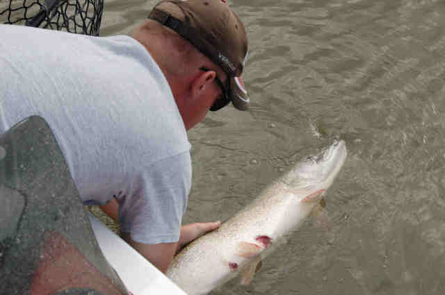 Posts: 2361 | shaley - 8/17/2008 10:27 PM 46 and a 47 3/4 Sunday evening between 7:45 and 8;20. For some reason no pics of the 46 due to camera malfunction. Got the bait I got the 47 from a member here Thanks. It did get new split rings after the catch though she pulled 1 hook off and almost the 2nd. She came about 10' out from the boat just as I ripped the bait up into sight. ROFLMAO!!! CONGRATULATIONS SHALEY! ALWAYS SO GOOD TO SEE ONE OF MY CUSTOM PAINT JOBS SUCCEED OUT THERE IN THE WILDERNESS!!!! I should have said something about those split rings, my bad. I had that one rigged up early when I was first trying them out, after JLong sent me some of the early prototypes, and had just put hooks on them to check their action and floatation. I had put that one up, and mainly threw one of my other secret special custom colors, red belly pirahna, but I knew those were crappy hangers, had not meant them to be there long term. Glad they didn't completely bite you in the hiney, my name woulda been mud. PS Don't put up another full pic of the bait, that color will be tough for anyone else to duplicate. Hope you catch 100 on it! | ||
