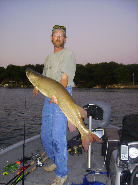 Posts: 159 Location: Stevens Point, WI | Good weekend on the muddy river. Fished a match on Saturday and had a 40 inch chew a hole in the net in the dark while we got the camera ready. I wouldn't care about the pic except that we needed it for the match! Doh! got another decent one and a tiny one and lost a good one. The next two days we boated 4 more fish in a few hours of fishing. The rock bite is finally on! Edited by 12gauge 8/19/2008 1:48 PM | ||