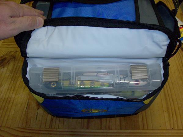 Posts: 1316 Location: Lebanon,Mo | Okay,I found a small soft sided cooler with that removable plastic liner inside.This still fits in my under deck storage at 10"h X 10"l X 13"w.It also can hold one 3620 plano in the front pocket and has mesh pockets on both sides to put tools or whatever.I found this at Wal-Mart,brand is Artic Zone.Cost me 13.84 plus tax.So I drilled holes in the top lip of the hard plastic liner. Drilled holes just big enough for the the barbs not to get hung up when you pull the bucktails out,holes are about 1 1/4" apart.Now i didnt run a wire through the center this time just because i didnt need the room to hang more. There is 22 holes for baits on the outside perimeter and if you had the wire run up the middle it would hold about 8-10 more.It even has that quik velcro flip lid to get that beer,i mean baits out if your to lazy to unzip. Attachments ---------------- bucktailbox1.JPG (60KB - 135 downloads) box2.JPG (63KB - 123 downloads) box3.JPG (37KB - 119 downloads) box4.JPG (38KB - 113 downloads) box5.JPG (53KB - 120 downloads) | ||