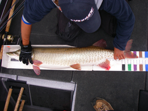 Guest, the colors are on the bumpboard because in Paul Hartman's Minnesota Muskie Trail your are required to take a digital photo of your musky on the bumpboard then release it. There's no transport, no waiting for a judgeboat for 1/2 hour. Once the photo is taken and the fish is released then a judgeboat is called to come over and verify your picture you just took. That is why the color codes are so important. They are way ahead of the WI Tournaments. And to answer any other questions pertaining to this, the color coded bumpboards AND digital cameras are provided at all of their tournment stops for you if you do not have your own.