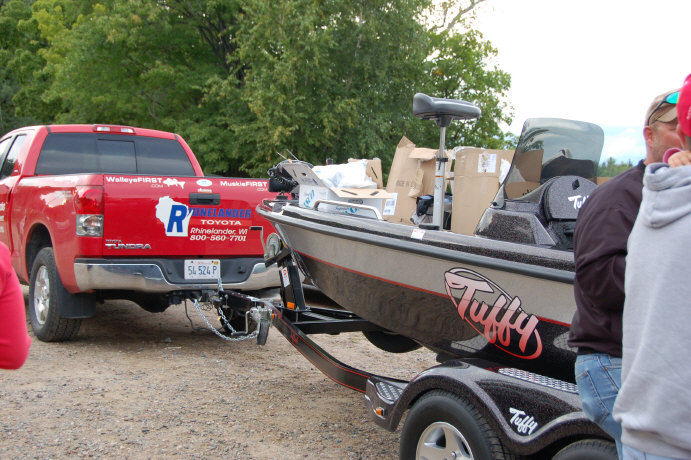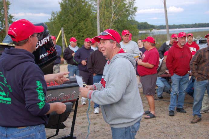 Posts: 32958 Location: Rhinelander, Wisconsin | 78 Boats took to the waters of Pelican Lake this morning at 7AM under cloudy skies with occasional mist and cool, brisk winds. The bite windows were short, but the fish moved on and off all day as almost all the boats reported contact with several fish during the day. Boat Number 7 took first with a 45.5" Muskie boated by Terry Schuelke. Second went to Bill Fassbender registering a 44.5" fish. 9 fish were released at boatside by 5 PM, including a 44" Hybrid caught by Ken Meullemans, good for third. 4th: Boat 4- Mike Reese, 42" ( Mike has fished all 17 of the Kevin Worrall Memorial events..Thanks sir! 5th: Boat 16-Rick Mundt, 40.5" ( last year's champs) 6th: Boat 51-Bill Behrens, 38.5" 7th: Boat 1-Danny Paiubicki, 38.25" 8th: Boat 12 Stan Krueger-35.5" 9th: Boat 23, Brad Thering-35" A huge thank you to the sponsors of this year's event! The Kevin Worrall Memorial benefits the Marshfield Ronald McDonald House. This event will raise a sizable amount thanks to the hard work by The Gerrits and many volunteers working as judge boats, serving food and drinks, and more; and most importantly, thanks to the generosity of the Muskie anglers fishing the tournament. From the bottom of our hearts, the Worrall Family thanks you all. A big thanks to Tuffy Boats for the donation and for bringing this coverage to the web! Attachments ---------------- DSC_0007.JPG (87KB - 195 downloads) DSC_0008.JPG (86KB - 178 downloads) DSC_0041.JPG (112KB - 165 downloads) DSC_0039.JPG (114KB - 167 downloads) IMG31.JPG (40KB - 174 downloads) IMG32.JPG (30KB - 174 downloads) IMG33.JPG (48KB - 170 downloads) IMG35.JPG (37KB - 166 downloads) IMG36.JPG (36KB - 170 downloads) IMG37.JPG (24KB - 177 downloads) DSC_0057.JPG (100KB - 177 downloads) DSC_0058.JPG (90KB - 173 downloads) | ||