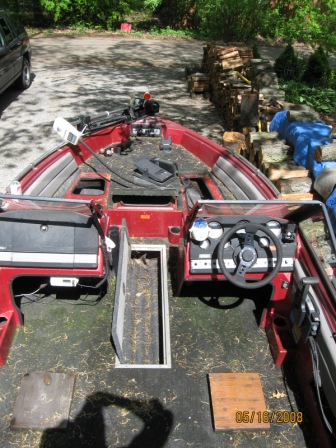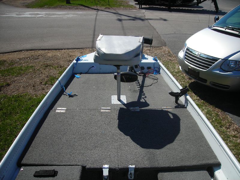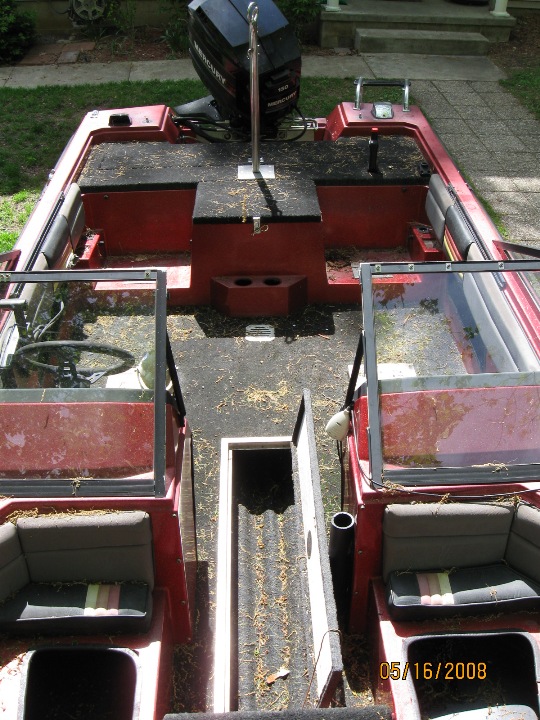 Posts: 2384 Location: On the X that marks the mucky spot | Ditch the upholstery in the front deck. That is unless you intend to use it as a fish and ski. Recarpet the boat instead of trying to get the green out. Trust me, it won't come out. At that time check to see if you have any soft spots in the floor. Fix them at this time, it's pretty easy to do. Carpet is pretty cheap (couple hundred dollars tops). Be sure to keep the old carpet as a pattern when you cut the new stuff. Turn the "rod rack" in the floor into a bait box. Get some gutter downspouts and glue them together to make your grid. If you don't intend on using the rear seats, extend the deck over the holes when you recarpet it. Use that space as some type of storage. I got my new seats from my old Cajun from BPS. they were the cheapest around. Ditch the TM and get a new one. Keep the windshields! You fish late in the season and they're VERY nice to have in the fall. | ||