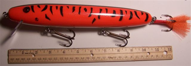 Posts: 235 | Just thought I would share a picture of my latest creation which I just completed. It seems that fall is the time for bigger baits. These will be available in solid, jointed and triple jointed. Also with and without a rattle chamber. All comments are welcome. Attachments ---------------- 1st_New_Monster_MuskieBurger.jpg (31KB - 106 downloads) Monster_MB_Paint_Schemes.jpg (75KB - 104 downloads) | ||