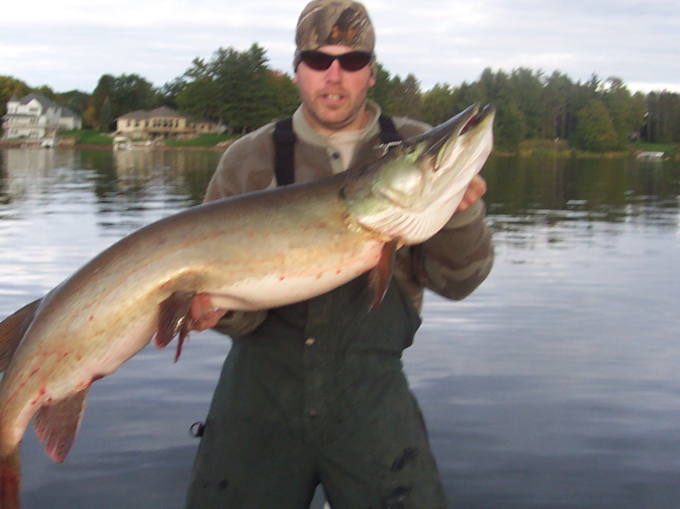Posts: 115 Location: Birch Run | Yesterday after hitting the opener for duck season we decided to go to the another lake and muskie fish for the afternoon. About 6 o'clock pm I hooked and landed my first muskie, on a db cowgirl. I have lost a couple this year and had some follows and seen some big fish, but this time it happened. I will try and put a picture on, the fish was 51inches , a rough measure of the girth at 23in. I was sick though as the cowgirl was completly inhaled and I had to cut hooks and there was some bleeding. I left the fish in the water as much as I could. It made me sick to think the fish might not make it, I don't know how tough these fish are, water temp was in the low 60's. I have never struggled to unhook a fish, being excited. I caught a 30lb pike a couple of years ago and I got a skin mount not knowing about replicas. This muskie dwarfed that pike and I would like to get a replica, I am going back to the lake to look around and make sure this fish isn't floating. I know everyone has to start somewhere and its to bad two rookies were the only ones in the boat. I have done alot of reading and watching videos but things don't always go as planned. I am happy to catch that fish but as my luck would go nothing goes perfect. | ||