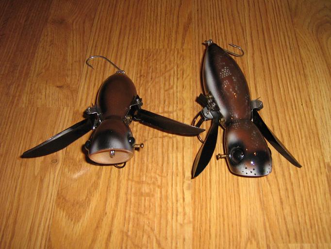 thanxs guys for the kind words, having a lot of fun with the creepers and crawlers, the chipmunks are double deadly with the cupped popper face you get a real loud plop plop along with the plop plop from the wings and the standard side to side wallking on the water action,