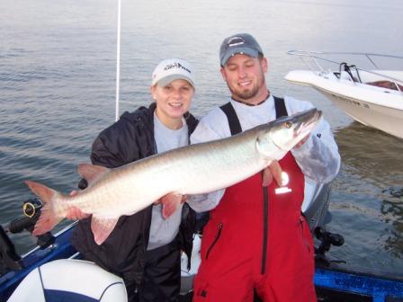 What a thrilling time for me. This weekend was no doubt, memorable. On Thursday I woke up, picked up the engagement ring I had for Sarah, Chris Radant's boat and headed on my way to Green Bay for the Muskies Inc., Best of the Best Tournament. I was excited about this tournament because Sarah was fishing it with me. She has asked to fish a musky tournament with me for some time and I thought a trolling bite would be the best for both of us. In addition, I had made plans to propose to her after 4 1/2 years of her love and support of me and my career.