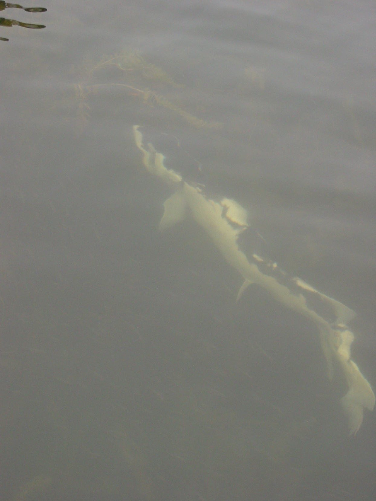 | Thank you Jason for posting pics. A friend of mine first saw this fish and did not have a camera, used a cell phone, he could not move the fish with anything in the tackle box. a week later he gets on the water and finds the same fish just sitting in 4' of water. he calls me, I come across the lake and take photos. it's about 46" maybe bigger , we start throwing lures at him/her and moved her, then the fish surfaced like a gator looked at us then it was gone. we thought we would be able to follow, but lost it in the weeds. How does a fish get to be this big when it loses it's advantage of camouflage? I hope to see it again soon by Dec. ! | |||