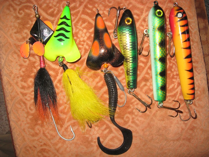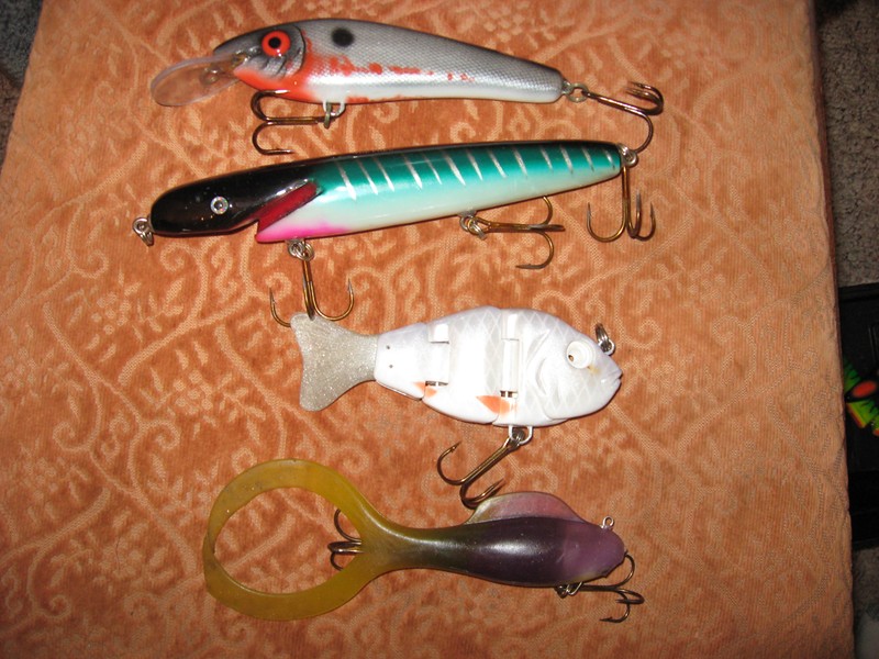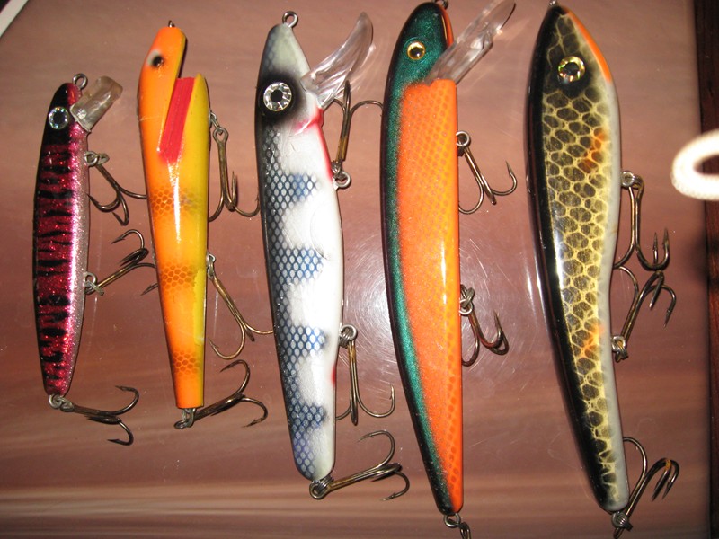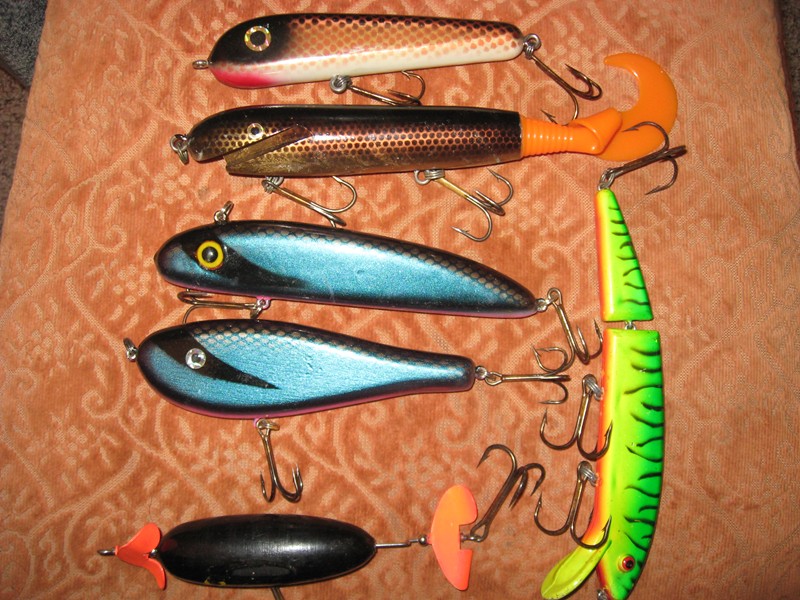 Posts: 605 Location: Marshfield, WI | Please make an offer but I am looking for 9" grandmas, big games, Danzyk gliders, Big Fork baits, baby jerkos, perkettes, perkas, Nimmer Swimmers, Tuff Shad gliders, Dr. Deths, Wades Wobblers, Double 10 spinnerbaits, creepers, W.A. wabull, Top H2O, and timberwolfs. I added prices to the baits if you prefer to buy. Prices are without shipping. Pics 1 and 2:($40) Nimmer Swimmer Battle Ax Pic 3:($35) Nimmer Swimmer hot surface igniter(pending) Pic 4: 2 reg dawgs. The sherbert one glows in the dark too. Mag is sold Pic 5: Custom Bleeding Hooker Jr(sold) Reaction Strike The Fred($10) Nate Bait- Missing eyes but has extra tails($25) Medium Joe($10) Pic 6: Instigator($12) Squirko(SOLD) Custom TR Twitcher(SOLD) Custom Loz Harrop($25) Topper Stopper($13) Jointed Grandma($13) Pic 7: Shallow raider(Sold) 8" reef hawg($10) 10" molly($12) 10" Jake in Durst Stumpknocker(sold) Danzyk 10" glider($22) Pic 8: Hawg Wobbler($13) Lee Lures Fishstick($15) 2 topwalkers(orange one $11, black one $7) Pic 9: DC-10(Sold) The Crook($14) Single 10 marabou bucktail($10) Pic 10: TNT Triklops($6) 2 Mepps topwaters($5 each) Buchertail Dancin' Raider($7) 2 vipers($10 each) Pic 11: Cobbs Countdown($20) Edited by k-bob 12/30/2008 11:49 PM Attachments ---------------- Battle Ax1.jpg (144KB - 73 downloads) Battle Ax2.jpg (139KB - 81 downloads) Hot Surface Igniter.jpg (123KB - 77 downloads) IMG_0365.jpg (154KB - 79 downloads) IMG_0367.jpg (144KB - 84 downloads) IMG_0374.jpg (170KB - 86 downloads) IMG_0377.jpg (130KB - 82 downloads) IMG_0368.jpg (103KB - 82 downloads) IMG_0369.jpg (184KB - 94 downloads) IMG_0371.jpg (169KB - 81 downloads) IMG_0378.jpg (70KB - 81 downloads) | ||