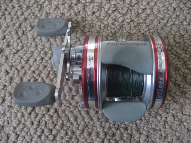Abu Garcia 5601CB Left Hand Baitcaster - This is the Cabaleas (red) version of the C4, which includes a thumbar, spooled with new 50lb spiderwire stealth, no boat rash, excellent cond. - $60