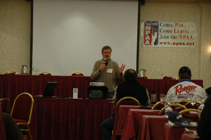 Posts: 32958 Location: Rhinelander, Wisconsin | The meeting was very informative, and it's now true that Muskie anglers can join. If you are a competitive angler or a full time guide, you will definitely benefit. Looks like I'll be getting my old NPAA Number 189 back! From the discussion yesterday, a new member will pay $110.00, and will, after renewing membership the second year, have the right to vote. Al Lindner addressed the group yesterday, and talked 'out of the box' from the start. Fascinating address, and inspirational to anyone looking for or already holding down a fishing/marine/promotional/sales/etc position. The NPAA supports professional anglers encouraging exemplary professionalism and supporting our efforts with our sponsors, showcases the accomplishments in press releases and on the NPAA website (www.npaa.net), supports competitive angling for all freshwater fish, supports and actively runs youth fishing events and seminars, supports Angler Young Angler events, (http://www.angleryoungangler.ca/) and much much more. Serious discounts are available from many companies to NPAA members all year long, and REALLY nice discounts are extended during the annual Conference. There are many potential fishing industry sponsors out there who look for that NPAA number when considering you as a team member. The available advice and training is invaluable, and the fee can be recovered in just a few purchases with the deep discounts available. The opportunity to rub shoulders with some of the top pros in the US and Canada and their sponsors doesn't hurt, either. The NPAA also is looking to grow as an advocacy group, working to protect our unfettered access to the waters we fish, our very privilege to fish and to fish competitively, and much more. In order to accomplish those goals, the NPAA needs to grow. I don't think there could be a better watchdog than the folks out there actually on the water full time. As of the end of this week, I'll be sporting the NPAA 189 Number on my boat and truck. Attachments ---------------- DSC_0056.JPG (56KB - 136 downloads) DSC_0052.JPG (55KB - 132 downloads) DSC_0041.JPG (110KB - 139 downloads) DSC_0050.JPG (76KB - 137 downloads) | ||