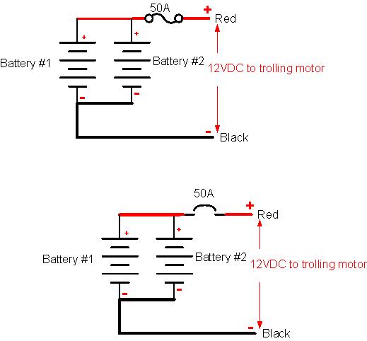 Posts: 2754 Location: Mauston, Wisconsin | Here you go. Be sure to hook the battery jumpers and trolling motor cabling up as shown. It balances the load between the two batteries. If you hook both trolling motor cables to the same battery, one battery will be working harder - trust me! Have fun! Al Attachments ---------------- Al's 12V parallel battery.jpg (22KB - 190 downloads) | ||