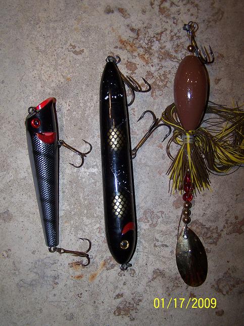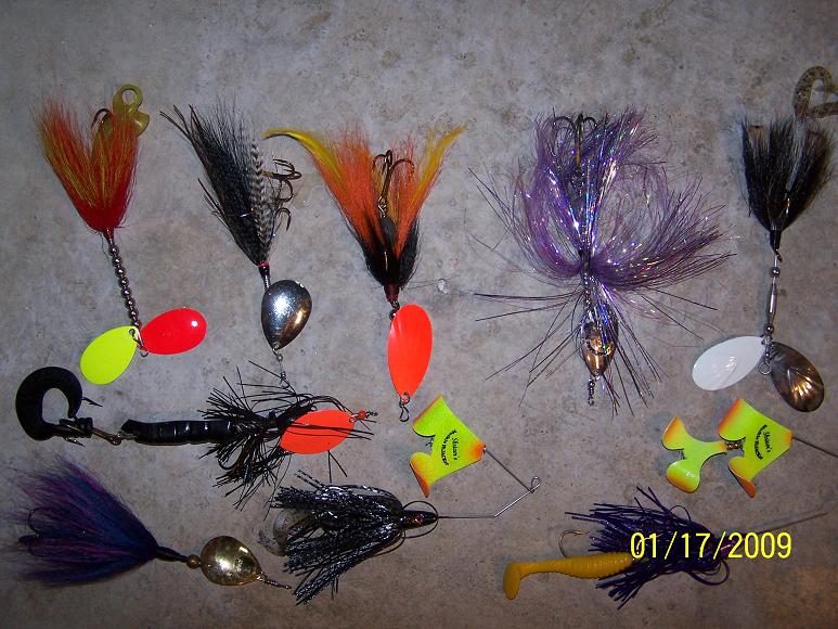 | PM sent PM sent on the Muskie Mayhem showgirl - rainbow/nickel blades - $6 Cat Tail bulger bucktail - black-white/nickel-white blades - $5 Shivers single buzz - black/flame blade - $5 Thanks Jr. | |||