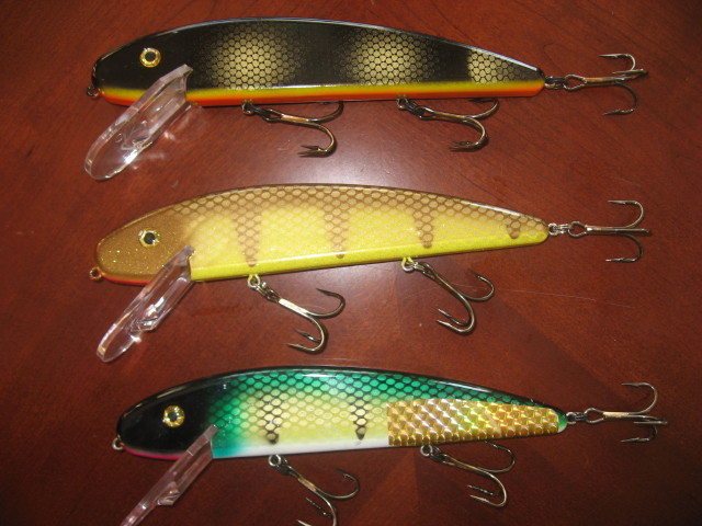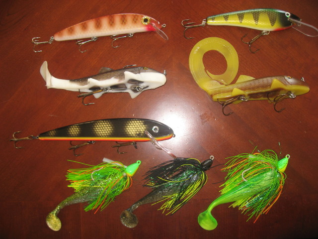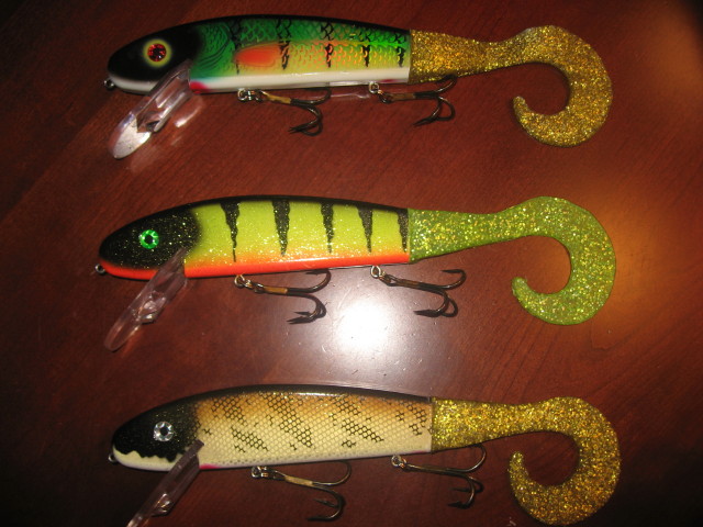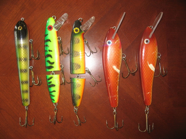 Posts: 378 Location: Michigan | This is what is left. With prices I have listed thes add up to $44, not including shipping. I will sell all of this shipped for $35. Got to clean it up... Pic 1 - $4 ea Bucher Topwater Buzzer Mr. Twister - Perch - used Bucher Topwater Buzzer Can't remember… Topwater Buzzer Pic 3 - Little Squirrely Ernies Walleye $6 Pic 4 Unknown topwater - WB Perch -$4 Pic 6 - all new, or like new - $10 ea Suzy Sucker - Black Glow Pic 8 - $10 ea 8" Jake - Black Perch Edited by Chadster 1/27/2009 5:23 PM | ||