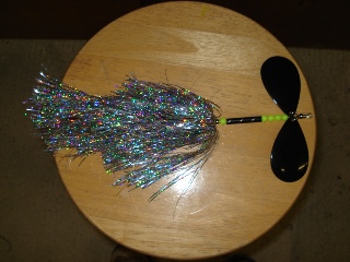 Posts: 131 | lambeau- i'm mailing you these 2 baits for the auction.the flashabou bait has 2 #10 blades and 2 super sharp vmc hooks.the flashabou spinnerbait weighs 2 oz,has 2 size 10 single hooks tipped with a 6" black/orange twister tail plus a #10 and a #12 blade.they're purty.the stool they're laying on measures 12" across.the skirts are served with 80lb power-pro to resist teeth. Attachments ---------------- baits 002.jpg (47KB - 130 downloads) baits 001.jpg (50KB - 119 downloads) | ||