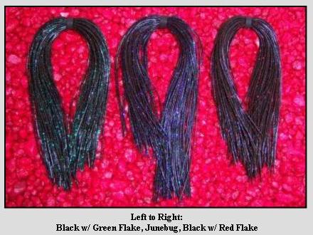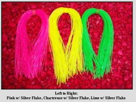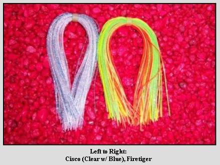 Here are some pictures of the skirts and some of the baits I make with them. I use four on a double ten, which makes for a really full skirt.