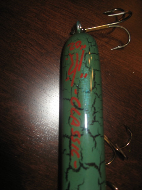 8" Hughey in Green over Black Crackle - 2002 bait - New $55