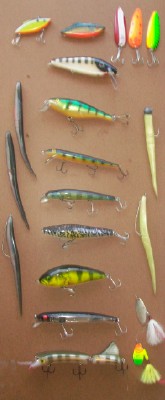 All other hard baits in second picture $5 each. Sppons, rattlebaits, Sluggos, and small Mepps sold in sets $3 each set.