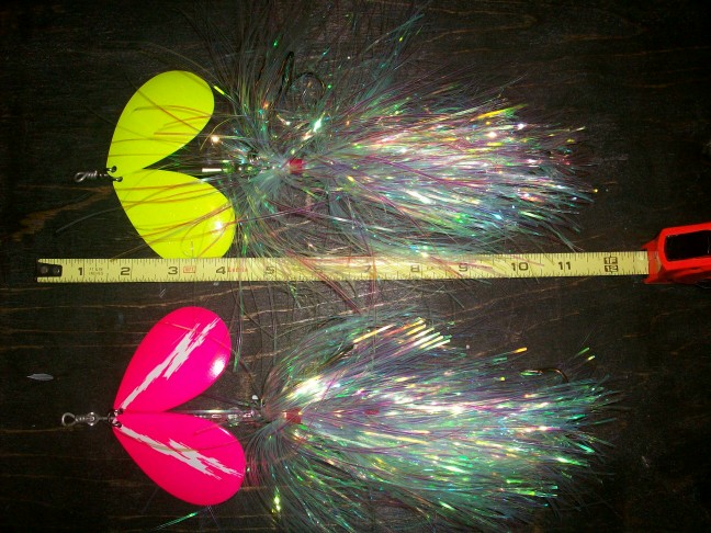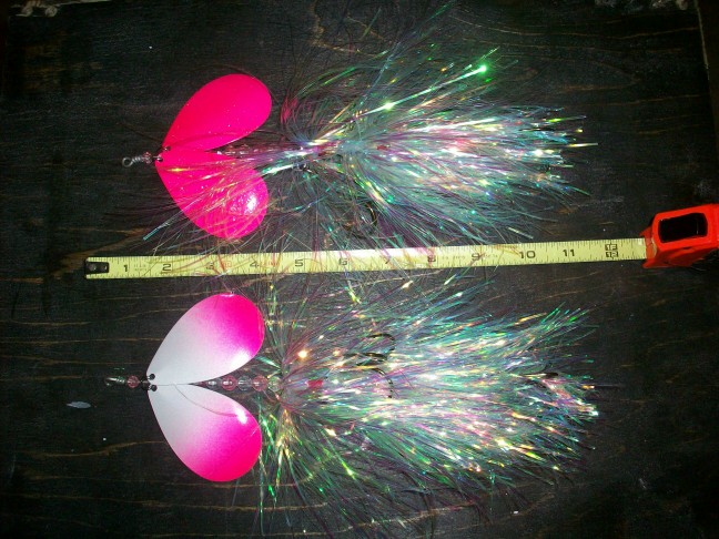 i have a few used and 4 new hand made dbl 10s. the 10s are made with pearl flash, .062 wire ,7/0 3551's, wolverine size 5 200lb and size 7 bucher split rings.
