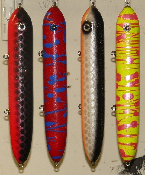 Posts: 2378 | Due to multiple requests I am offering left over customs from the MN Expo for sale here at Muskie First. I have at least one of each color shown in the photos. Prices are as follows: Weagle - $25 Baby Weagle - $20 10" Weagle - $30 Wabull - $25 WA Wabull - $25 Baby Wabull - $20 WA Baby Wabull - $20 Shipping is $6 for up to two baits. Buy three or more and shipping is free. Email only please...it is easier to keep track [email protected] Update: The following baits are sold out... 10" Weagle - Orange Belly Cisco WA Wabull - Clown WA Baby Wabull - Walleye, Black/Silver Edited by BALDY 4/22/2009 8:30 PM Attachments ---------------- 10 Weagles.JPG (186KB - 81 downloads) Baby Wabulls.JPG (197KB - 90 downloads) WA Baby Wabulls.JPG (182KB - 92 downloads) WA Wabulls.JPG (144KB - 96 downloads) Wabulls.JPG (181KB - 92 downloads) Weagles.JPG (158KB - 99 downloads) Baby Weagles.JPG (143KB - 92 downloads) | ||