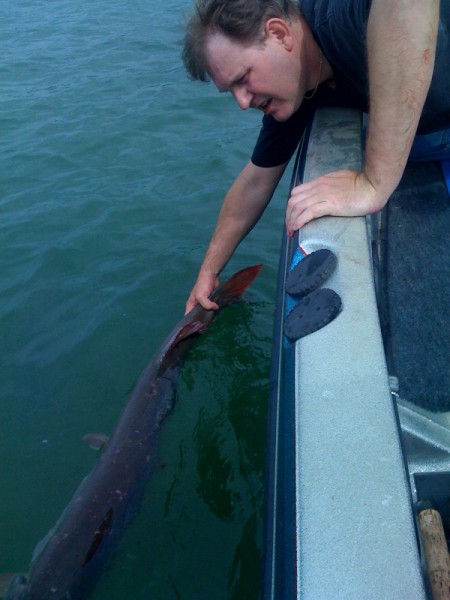 That was a really nice fish, but the congrats goes to the pooch for bitin Greg on the Arse!!