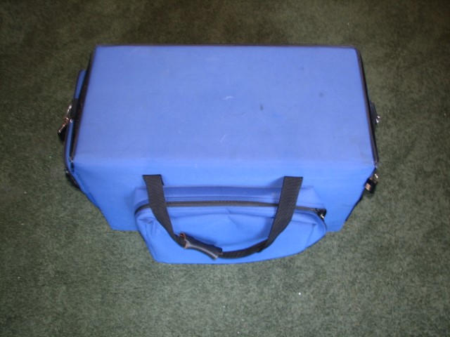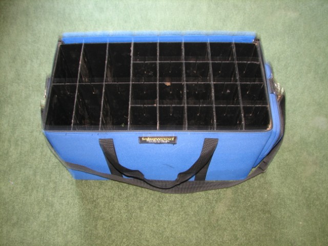 Will hold up to 100 musky and pike lures. Zippered side pocket includes a 3730 large plastic container. Heavy duty webbing sewn around case for strength and durability. Adjustable shoulder strap included. Has six 2.75” x 6” and twenty 2.75” square bait compartments with 74 hook grooves. 12"W x 14"H x 24"L.