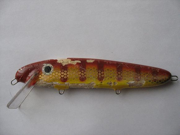 Posts: 1764 Location: Ogden, Ut | I've got a Baby Wabull that has been pretty abused by the tigers. It was responsible for 7 fish one day alone. Baldy wants me to send it back for a re-paint, but this one's not leaving my possession! Most of the paint is gone; it was originally perch and did at one time have both eyes... It still works and finds itself in the rotation quite regularly. S. Attachments ---------------- bald wabull.jpg (140KB - 99 downloads) wabull fish 5.jpg (84KB - 100 downloads) | ||
