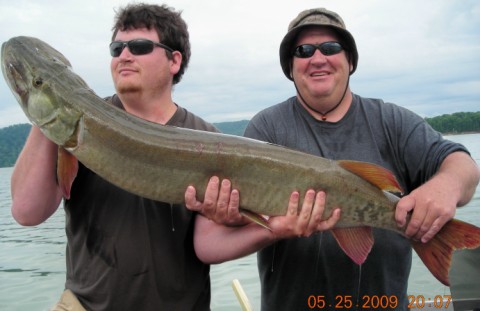By far the hottest bait this year has got to be the Medussa. I was down on Cave Run last weekend and it seems like everyone, Greg Thomas, Tony Grant, Justin Mullins, Scott Salchi have been catching a ton of fish on them and some big ones. I fished with Scott Salchi last weekend and he was telling me how incredible this bait has been so far. Salchi got a 50.5" on Sunday and beast of 48" on a Medussa on Monday on the Cave. If I had a picture I would post it. I'll see if Scott has one. Impressive.