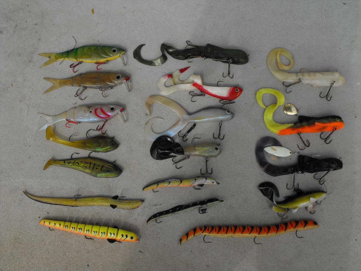 6" deep grandma gone, muskie magnet $12, slippery slider $10