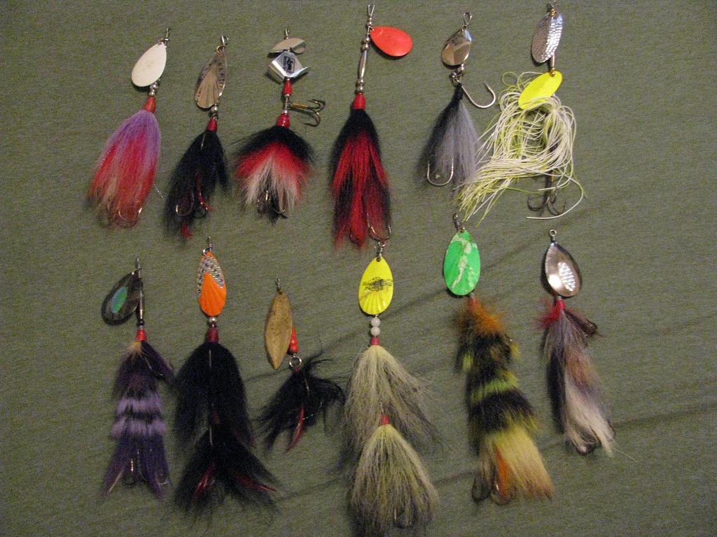 Lot of bucktails and one buzz bait which includes eagletail, ghosttails, harrasers, Mepps, Grim reaper, etc.. Some used and some are new. Tails are all good ecept mepps which is curled $70.00 shipped.